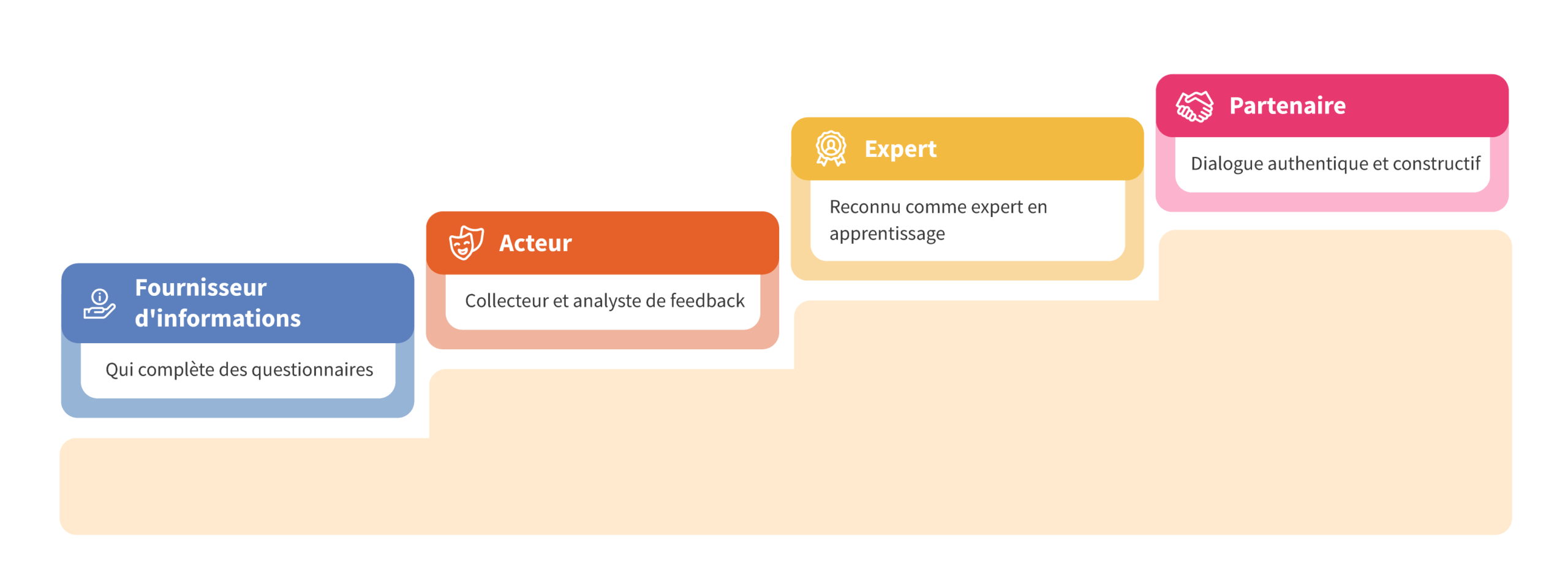 La participation active des apprenants aux processus d’assurance qualité garantit que les pratiques institutionnelles répondent aux besoins de tous les apprenants. Les étudiants doivent contribuer à chaque étape de l’assurance qualité, du retour d’information à la co-élaboration d’améliorations. Les approches collaboratives permettent aux enseignants et aux étudiants de créer des partenariats constructifs qui améliorent la qualité de l’enseignement. La figure ci-dessous illustre les différentes manières dont les apprenants peuvent participer à l’assurance qualité, en reconnaissant les différents rôles qu’ils peuvent y jouer.